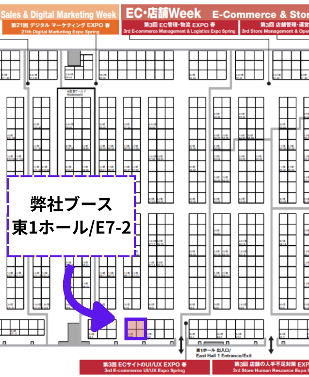 会場は 東京ビッグサイト (東 1~3, 7, 8、西 1~4ホール)で、弊社のブースはE7-2(東1ホール内)になります。